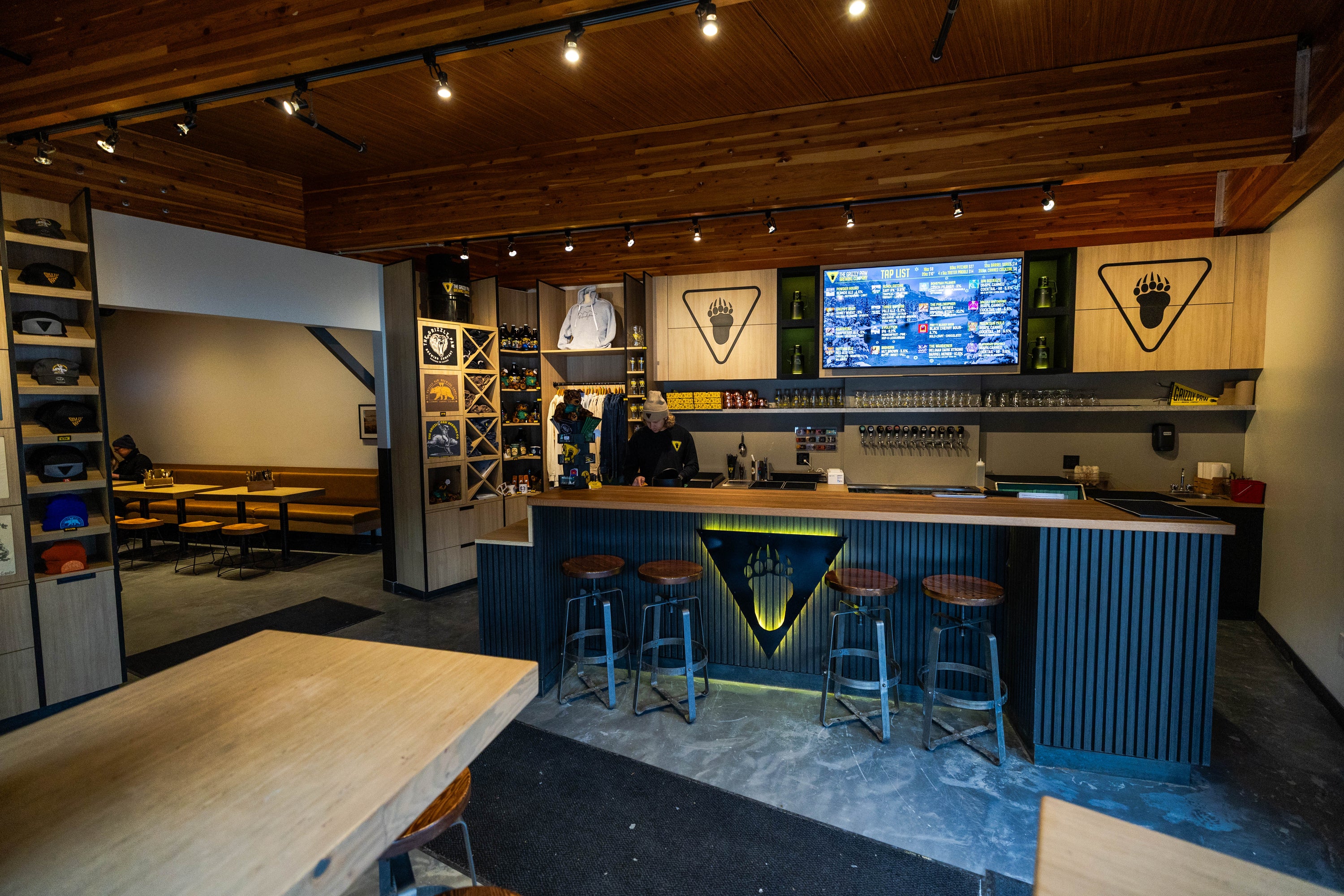 At The Grizzly Paw Taproom, enjoy a hospitality experience that goes beyond any typical brewery "Tap Room". Savor draught beer, sodas, and canned cocktails. Grab chilled cans for adventures or fill up a growler. Explore seasonal merchandise – from pint glasses to cozy sweaters. Our vibe is casual yet pro, with a team ready to serve you on our year-round patio or in our cozy nook with board games. Note: dogs are only permitted on the outside perimeter of the patio where we have comfy mats and water bowls.